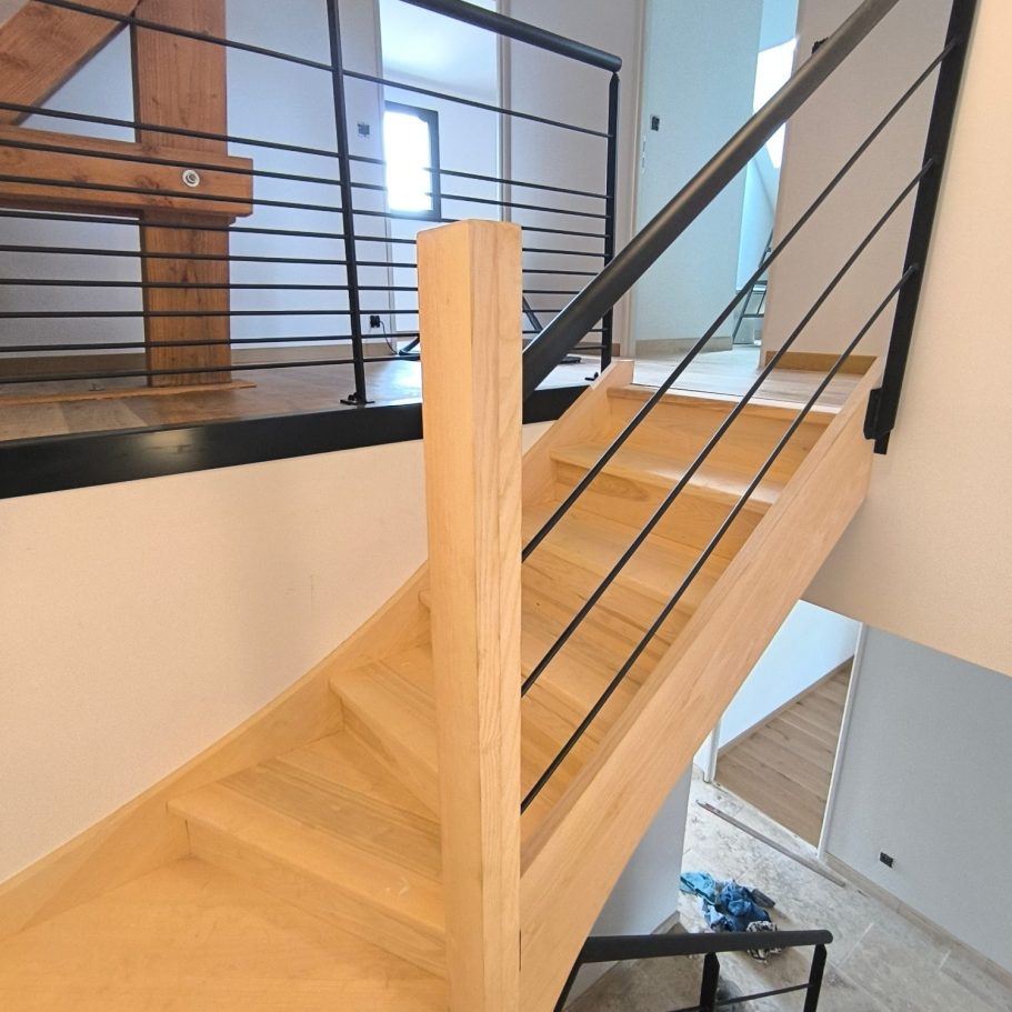 Création d'un garde corps sur escalier bois